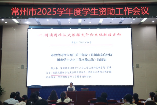 9月11日下午,常州市2025学年度学生资助工作会议在省常中秋白厅召开。市教育局副局长黄屹出席会议,各辖市区教育局的分管科室负责人及工作人员、局属及相关行业学校的分管中层干部及工作人员参加会议。
